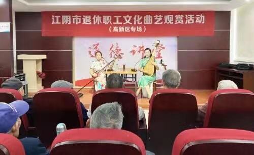 弦琶琮錚十分悅耳,吳儂軟語(yǔ)娓娓動(dòng)聽。為進(jìn)一步豐富老年人業(yè)余文化生活和推廣傳統(tǒng)文化藝術(shù),11月中旬,市退管辦聯(lián)合高新區(qū)社會(huì)事業(yè)局共同舉辦了一場(chǎng)為期半個(gè)月的“江陰市退休職工文化曲藝觀賞”活動(dòng),活動(dòng)在高新區(qū)石牌社區(qū)三樓舉行,邀請(qǐng)了江陰市評(píng)彈團(tuán)趙愛萍、趙雪蓮女士,為大家彈唱長(zhǎng)篇彈詞《林子文》,吸引大批熱愛評(píng)彈的居民前來(lái)觀賞,獲得了一致好評(píng)。 (退管辦 石牌社區(qū)供稿)